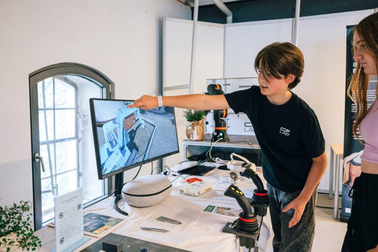 Im Construction Future Lab (CFLab) geht es uns dem Namen entsprechend um die Zukunft der Bauindustrie – vernetzte Maschinen, digitale Zwillinge, Robotik und Automatisierung. Doch bei aller Technologie steht vor allem eines im Mittelpunkt: der Mensch und unsere Bestrebungen die Zukunft verständlich, zugänglich und erlebbar zu machen.