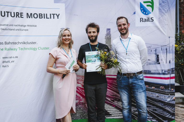 Wenn Wissenschaft, Mittelstand und Start-ups zusammentreffen, entsteht etwas Besonderes – so auch beim jüngsten Innovationspitch, bei dem wir als CFLab gleich doppelt vertreten waren: Mit einem interaktiven Messestand und live auf der Bühne. Unser Kollege Benjamin Beck präsentierte gemeinsam mit Netzwerkmanagerin Dr. Sophia Vatterodt und Projektpartner Andreas Tigges eine visionäre Lösung für mehr Sicherheit im Gleisbau. Highlight war unser interaktiver Bagger-Demonstrator, der zeigte, wie intelligente Kollisionsschutzsysteme die Baustellen der Zukunft sicherer machen können.
