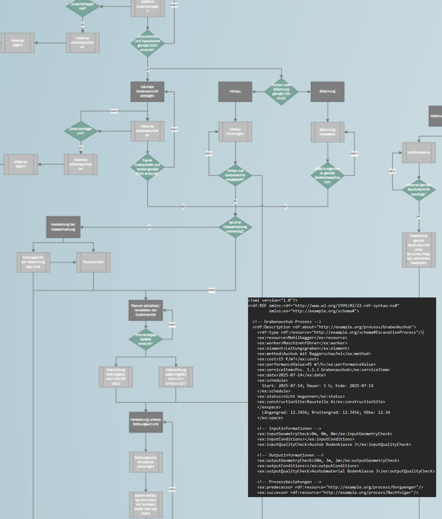 Fehler im Bauprozess sind teuer. Allein im Tiefbau entstehen jährlich rund 19,5 Millionen Euro Fehlerkosten [VHV Bauschadensbericht Tiefbau 2022/2023, Seite 86]. Mit digitalen Prozessen und klar definierten Strukturen können diese Risiken erheblich reduziert werden. Darüber hinaus entsteht die Basis für teil- und vollautomatisierte Bauausführung, bei der Maschinen selbstständig auf digital hinterlegte Prozessinformationen reagieren. Und: Wer Prozesse versteht und sichtbar macht, kann sie verbessern – das gilt für Effizienz ebenso wie für Sicherheit.